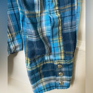 WRANGLER Pearl Snaps Western Blue Plaid Button-Up Shirt.
