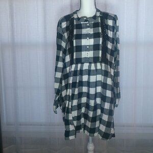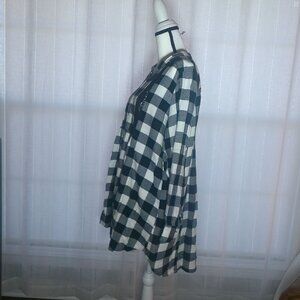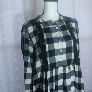WRANGLER RANCH SHIRTS Long Sleeve 1/2 Button-up Black/White Plaid Tunic XL