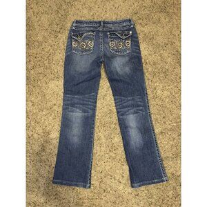 WRANGLER ROCK 47 Low Rise Denim Jeans Mid Wash Flare Bootcut Y2k 28x29.5 HEMMED