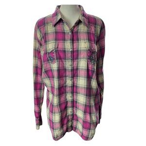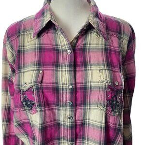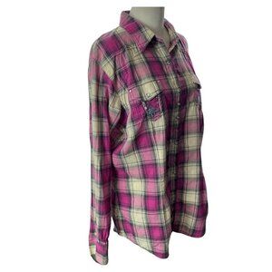 WRANGLER Rock 47 Western Shirt Long Sleeve Snap Front Checker Pink XL 78-18