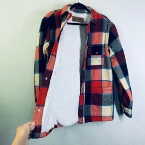 WRANGLER Shacket Jacket Chore Barn Coat Plaid Sherpa Lined Pearl Snap W Pockets