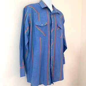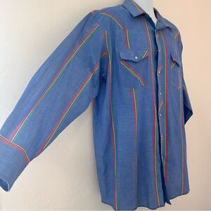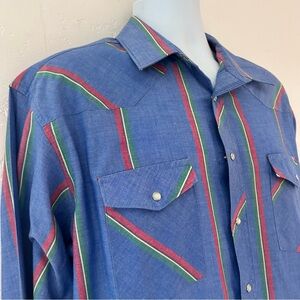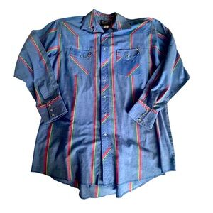 WRANGLER VTG 90s Men's Western Blue Striped Shirt Size XL Pearl Snap EUC