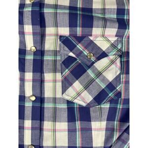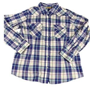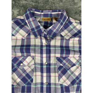 WRANGLER WESTERN PEARL SNAP SHIRT XL BLUE PLAID LONG SLEEVE WOMEN'S