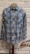 Casual button-down with a multicolor plaid design (silver thread details which add shine and beautiful deep blue purple and matron plaid patter). Features classic western pockets and snap buttons. Ideal for everyday wear.