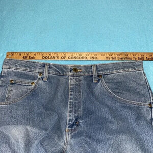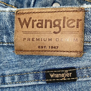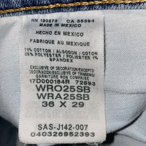 WRANGLER denim blue jeans stretchy waist comfort button zipper fly size 36 X 27
