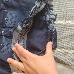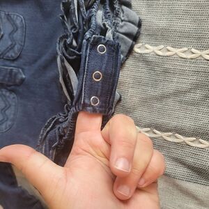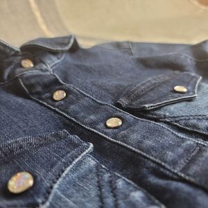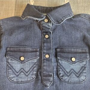 The cutest denim Wrangler romper/dress. Long sleeve with sparkle buttons. Size 24M