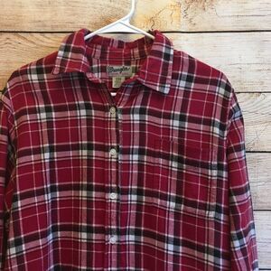 EXCELLENT CONDITION WRANGLER WRANCHER FLANNEL SHIRT IN RED PLAID