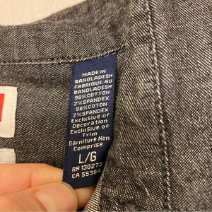WRANGLER flex for comfort Grey black chambray Jean denim Button-Up Long Sleeve L