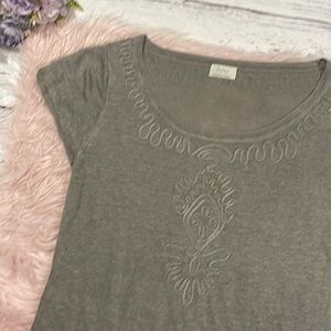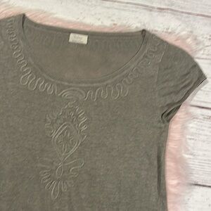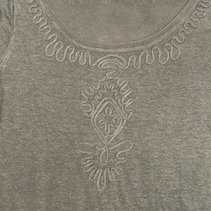WRAP London linen embroidered ruffle trim gray colored tunic. This tunic is in great used condition