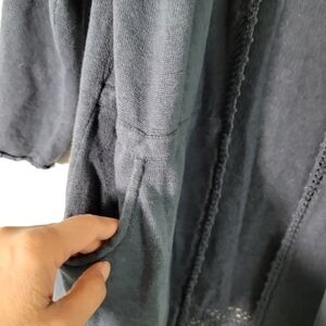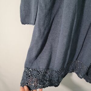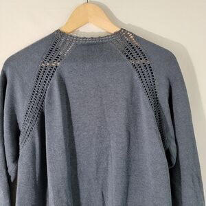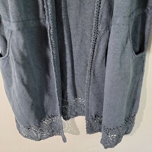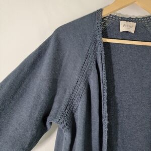 WRAP London Women's Blue Open Front Cardigan Sz 14 Linen Blend Crochet Pockets