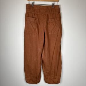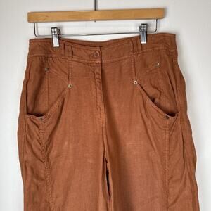 WRAP London Women's Rust Orange 100% Linen Wide Leg Cropped Pants Lagenlook Sz 8