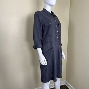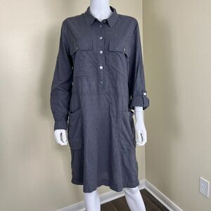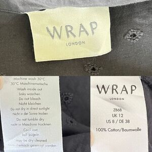 WRAP London Women's Size 8 Gray Cotton Shirt Dress Eyelet Embroidered Henley