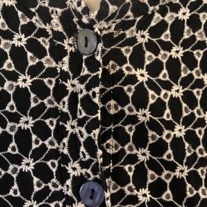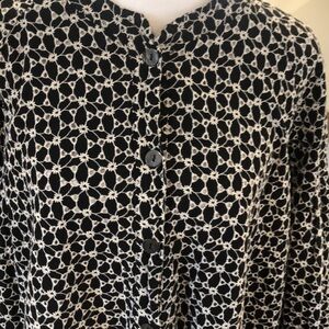WRAP London black & white button close dress with open front pockets. Size 18.