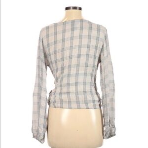 Wrap front lightweight plaid top perfect for fall and transitional weather 100% rayon