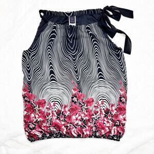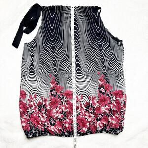 WRAPPER Black Halter Tank Top Cream & Pink Floral Blouse with Bow XL