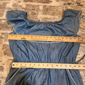 WRAPPER chambray blue belted cropped wideleg jumper, pockets. Size Medium