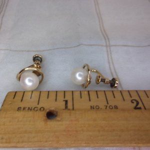 WRE signed 12K GF gold filled screw back earrings with cultured pearls, nice condition, show some wear to finish on the stems, still great looking vintage earrings.