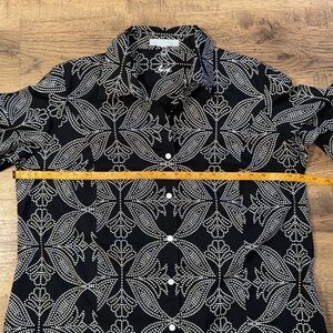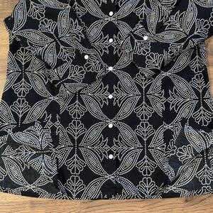 This elegant black and white top features a sophisticated pattern, perfect for any occasion. Its stylish design offers both comfort and class.