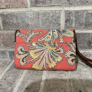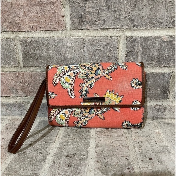 Beautiful wristlet by Chaps. Floral pattern, snap closure and card sorter. Nice pre loved condition.