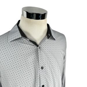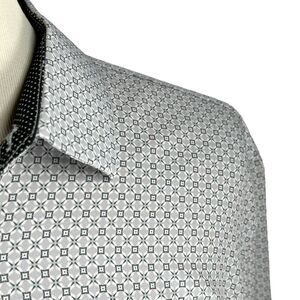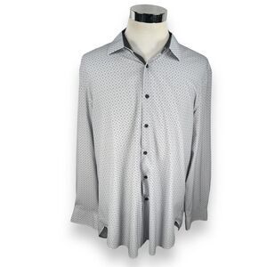 WRK Dress Shirt Men’s 18 Gray 4 Way Stretch Slim Fit Geometric Spread Collar