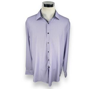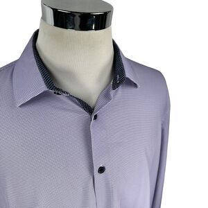 WRK Dress Shirt Men's 18 Purple Houndstooth 4 Way Stretch Performance Slim Fit