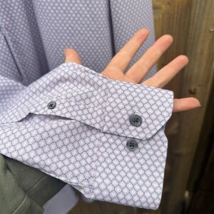 WRK Men's Geometric Dot Print Button-Up Dress Shirt Purple 17.5