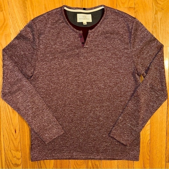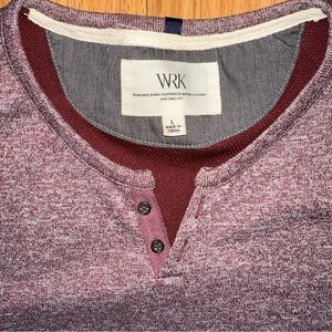 WRK Work Rest Karma Mens Henley Shirt Heather Burgundy Spruce Textured L