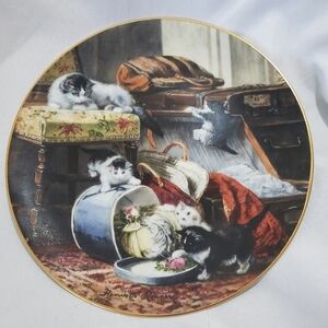 W.S. George Mischief with the Hatbox Cat Collectible Plate Wall Hanging 1990