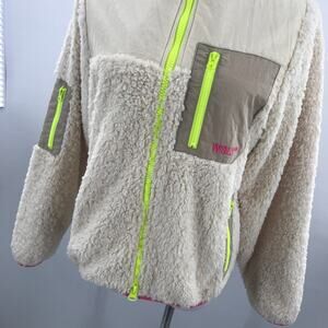 WSLY Cream Eco Sherpa Fluffy Mixed Media Barrow Jacket