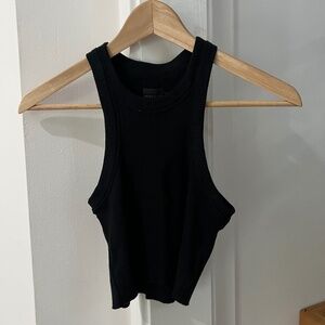 Super soft cropped ribbed stretchy tank. Excellent condition, only worn once or twice. Note that the bottom of the tank is unfinished and you can see a few of the elastane threads upon close inspection (see photos).