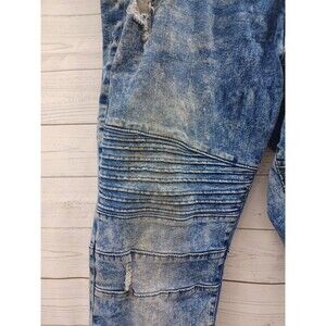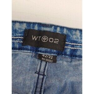 WT 02 Pants Mens Blue Denim Jeans Distressed Acid Wash Cotton Blend 42x32