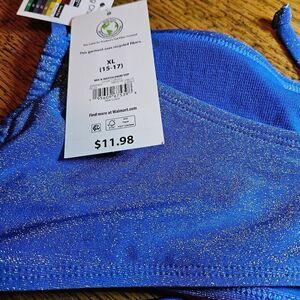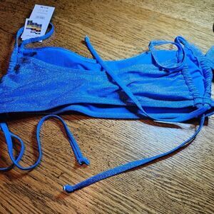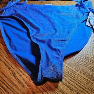 WT NOBO Sparkly Blue Bikini Set | Retro High Waist Bottoms | XL Top & L Bottom