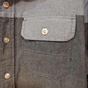 WT02 Men's Small Chambray Colorblock Denim Jean Button Down Western Shirt Cowboy