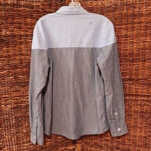 WT02 Men's Small Blue Chambray Colorblock Denim Jean Button Down Western Shirt Cowboy
