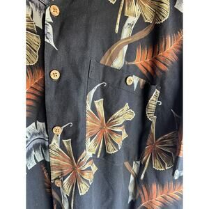 WTF Men's Vintage Hawaiian Shirt Button Up 100% Silk Leaf Print Black Size Large