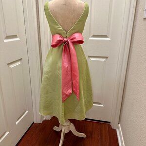 WTOO by Watters Cocktail Dress Size 4 Green A line Silhouette With Pink Tie Bow
