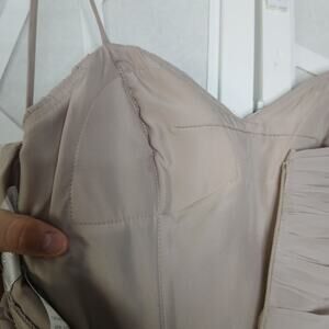 WToo Taupe Bridesmaid Crinkle Chiffon Maxi Dress Womens 0 Neutral Boho