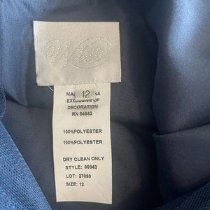 WToo by Watters Style 343 in the color Indigo. Unaltered size 12, but fits more like a size 10. See dress on the Watters website here: https://www.watters.com/products/343/?colors=Indigo
