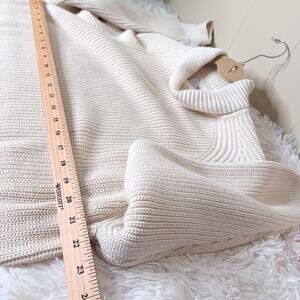 WVN Organic Cotton Neck Beige Chunky Knit Ribbed Turtleneck Sweater Medium
