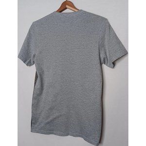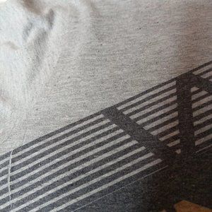Some very slight pilling. No holes, tears, stains, or other flaws. The shirt is heather gray (with black speckles).