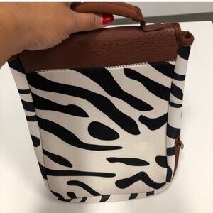 WW Zebra Print Bag With Faux Leather Flap & Handle-LIKE NEW