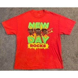 WWE Authentic New Day Rocks Kofi Kingston Big E Xavier Woods Red T-Shirt XL