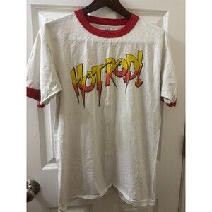 WWE Authentic "Rowdy" Roddy Piper Retro Hot Rod Mens Ringer White T-Shirt M