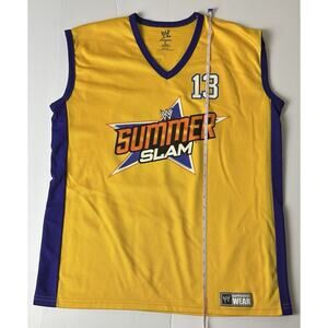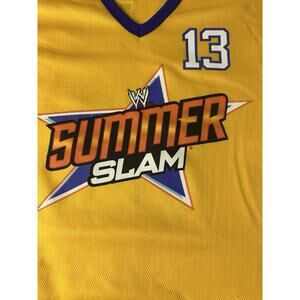 This is a WWE Authentic Summerslam Basketball Jersey Mens Size L Yellow LA *flaw On Back*