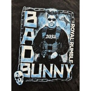 Authentic WWE Official Bad Bunny Royal Rumble "Conmigo No" T-shirt Sz tag looks like 2XL or 3XL SEE MEASUREMENTS