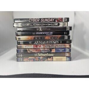 This listing is for a lot of 10 WWE wrestling DVDs featuring classic Pay-Per-View (PPV) events and one rare compilation disc. A must-have for wrestling collectors and fans of the Attitude and Ruthless Aggression eras!