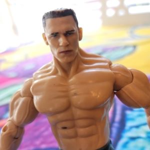 Description: John Cena without shirt, blue pants