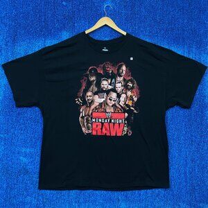 Classic WWE Monday Night Raw graphic tee in size 3XL. Measures 28 inches pit to pit and 32 inches long. Soft, comfortable fabric with a bold design—perfect for fans of WWE and professional wrestling. New, never worn overstock in excellent condition.