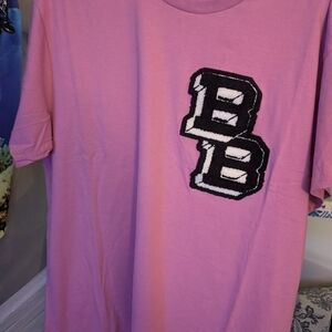 Vibrant pink tee with bold black and white 'BB' logo. Comfortable short sleeves. Perfect for casual wear.