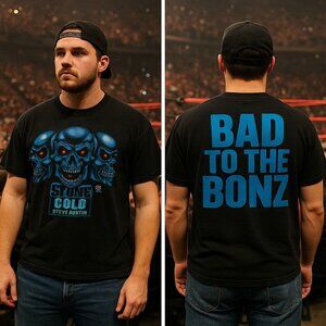 Relive the Attitude Era with this vintage 1998 WWE Stone Cold Steve Austin “Bad to the Bonz” T-shirt — a true collector’s gem for wrestling fans and retro streetwear enthusiasts alike. Featuring the iconic triple skull graphic with glowing red eyes on the front and the bold “BAD TO THE BONZ” slogan across the back, this tee perfectly captures the rebellious energy of “Stone Cold” Steve Austin at his peak. Crafted from soft, heavyweight cotton, it offers that authentic late-’90s fit and feel. Whether you’re a diehard wrestling fan, vintage graphic tee collector, or lover of bold, nostalgic style — this is one shirt that says it all: Don’t mess with Stone Cold.